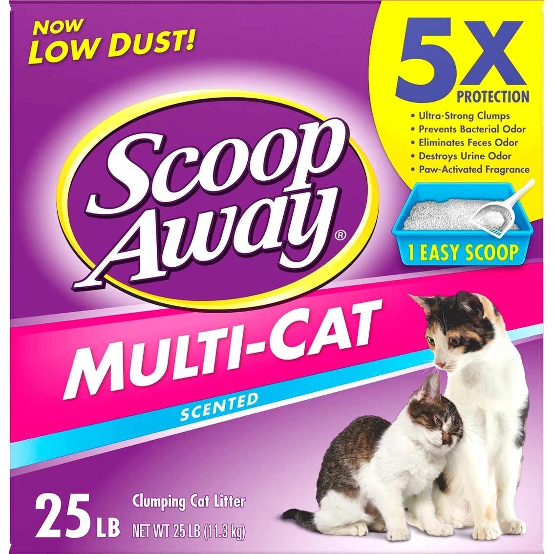 Clorox Scoop Away Multi-Cat Scented Scoopable Cat Litter is specially formulated to handle odors in even the busiest litter boxes. This multi-cat strength litter offers maximum clump strength for easy cleanup. Scoop Away Multi Cat is also fortified with Ammonia Shield to destroy litter box odors and inhibit growth of bacterial odors. Model: 2014.