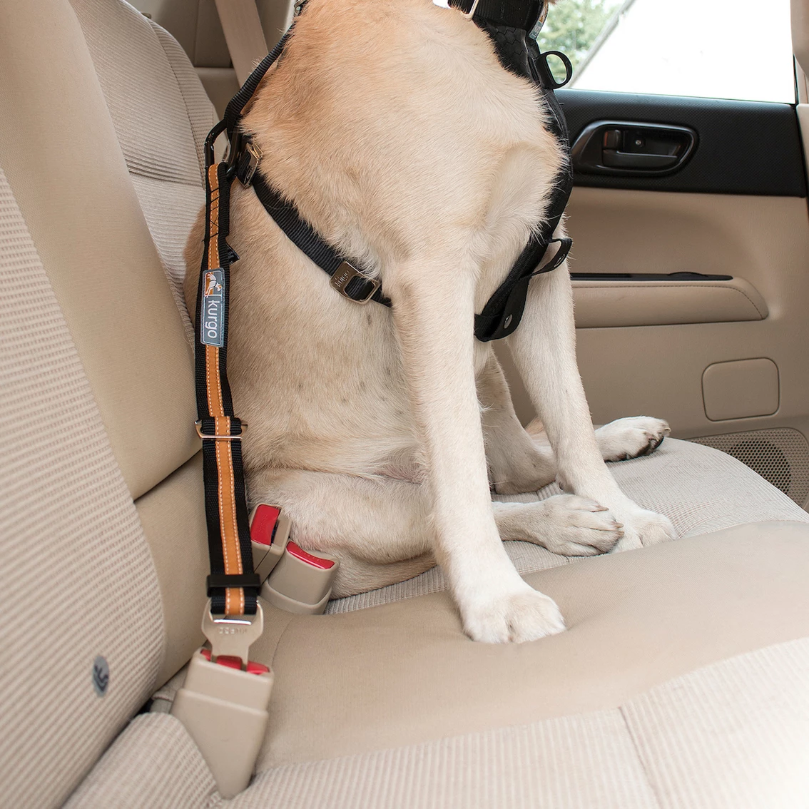 Simply click and go with this easy to use dog seat belt tether to prevent distracted driving. The Kurgo Direct seat belt tether attaches with a carabiner to your dogโs harness and then clicks into the female slot of any of your carโs seat belts. You can leave the attachment clicked in and there is no reason to undo the seat belt every time your dog gets in or out. The tether can be extended from 15-22 in. to give your dog some extra movement. Model: K01244.