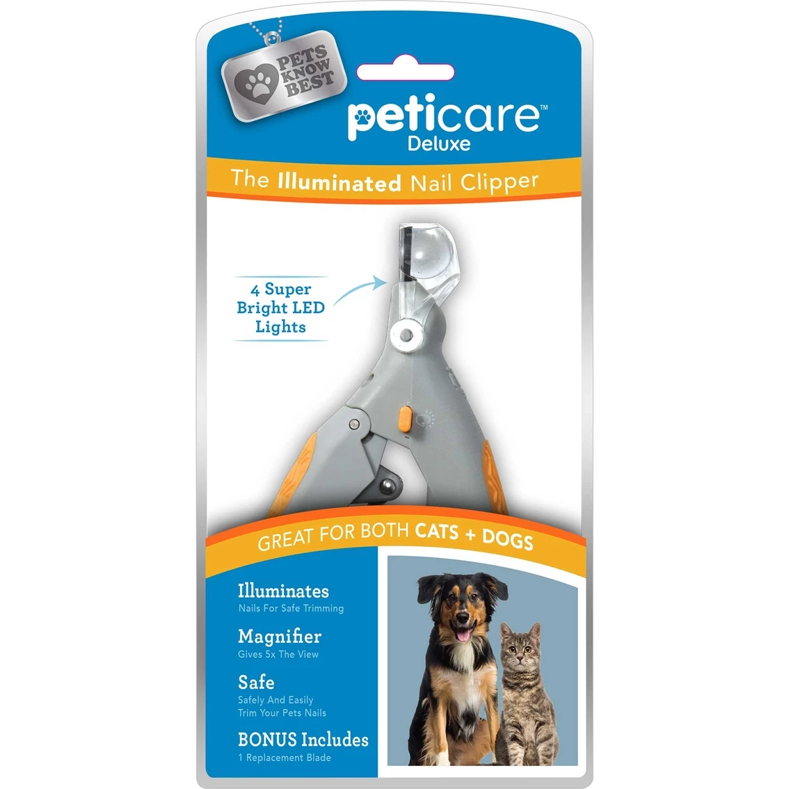 The Pets Know Best Peticare Pet Nail Care System is an illuminated nail clipper, great for dogs and cats. The safe, easy way to trim your pet’s nails. It is designed with combined bright LED lights, a 5x magnifier and comfort grip handles to make this the ultimate nail clipper. Model: PKB06124.