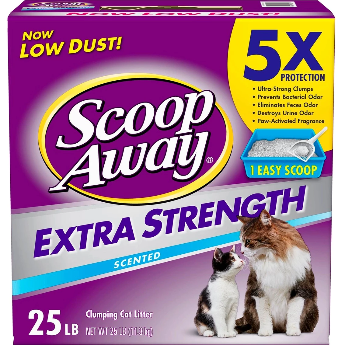 Scoop Away Extra Strength Scented Scoopable Cat Litter offers powerful control to handle the most extreme litter box odors. It provides maximum odor control with Odor Guard Technology and strong clumps for easy cleanup. Scoop Away Extra Strength is also fortified with Ammonia Shield to destroy litter box odors and inhibit growth of bacterial odors.