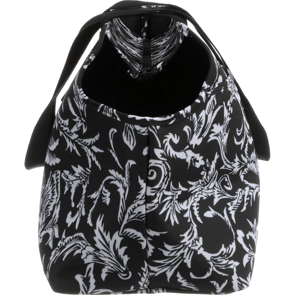 Wipe-clean polyurethane coating on the interior. Fleece covered, removable foam cushion for pet comfort and support. Fleece cover is removable for easy cleaning. D ring on front strap for keys, a collapsible bowl, or a roll of waste bags. Zip closure. For animals up to 25 lbs. Model: 27399U06.
