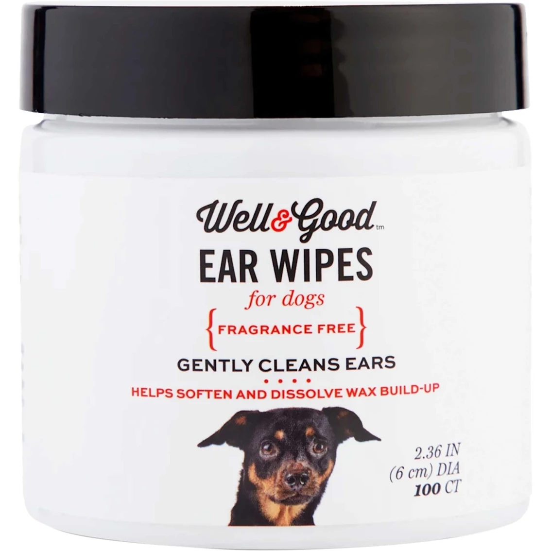 The Well & Good Small Dog Ear Wipes cleans and quickly dissolves wax build-up. Gentle and soothing formula. Painless and non-toxic. Helps aid in odor control. Size: 100 pk.